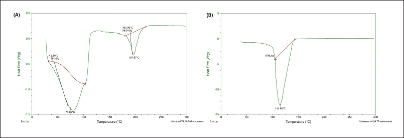 ![]() | Figure 6. DSC reports of (A) BO (B) optimized formulation of Bergamot nanoemulgel. [Click here to view] |