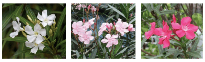 ![]() | Figure 1. White (left), pink (middle), and red (right) flowers of N. oleander. [Click here to view] |